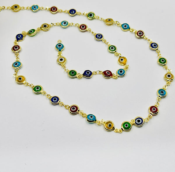 Unfinished Evil Eye Chain, Multi colour Unfinished, Talisman Protection Chain, Statement Necklace Chain